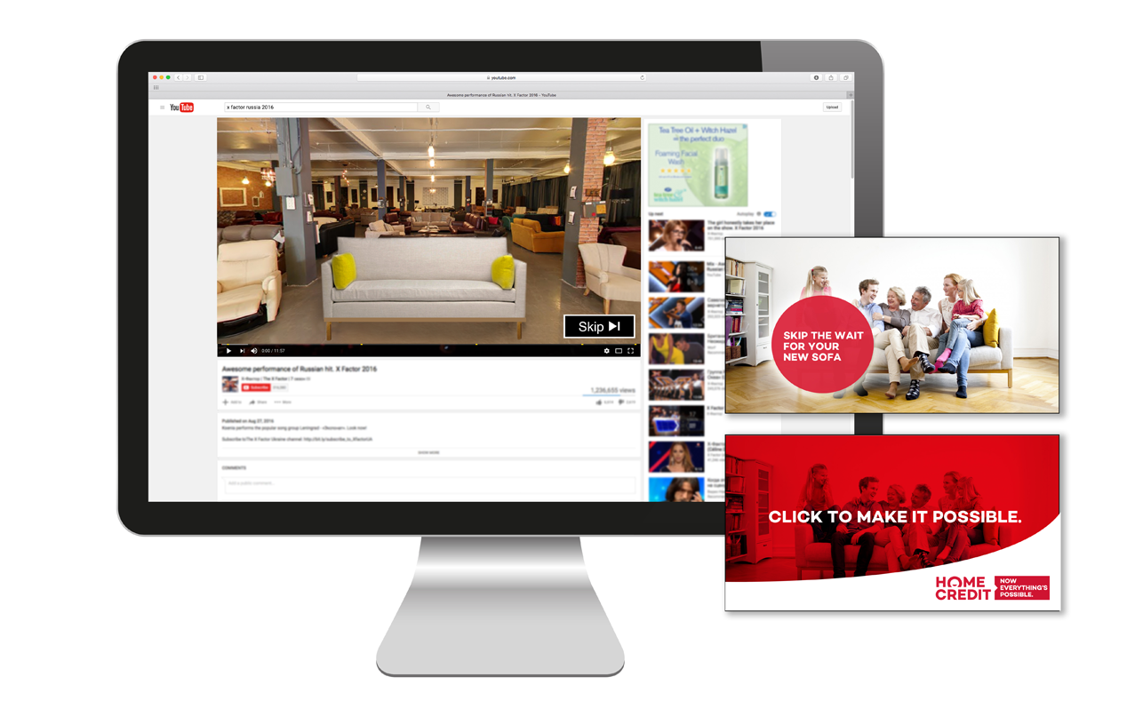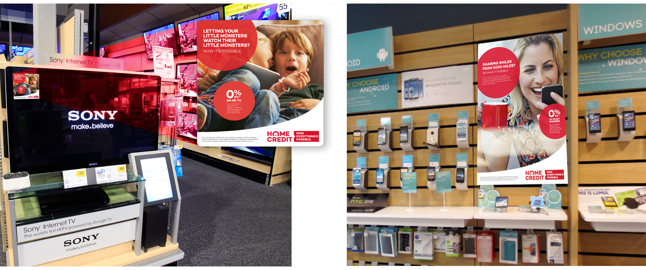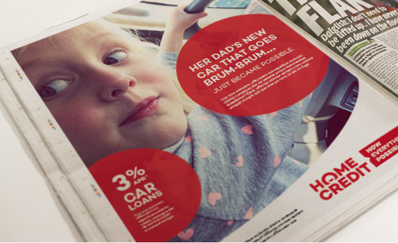 Successful pitch for the complete repositioning for Home Credit Bank consumer advertising which is based in 11 countries worldwide, predominantly in Russia, Eastern Europe and Asia. I worked as part of the design team on the advertising development and campaign creative.