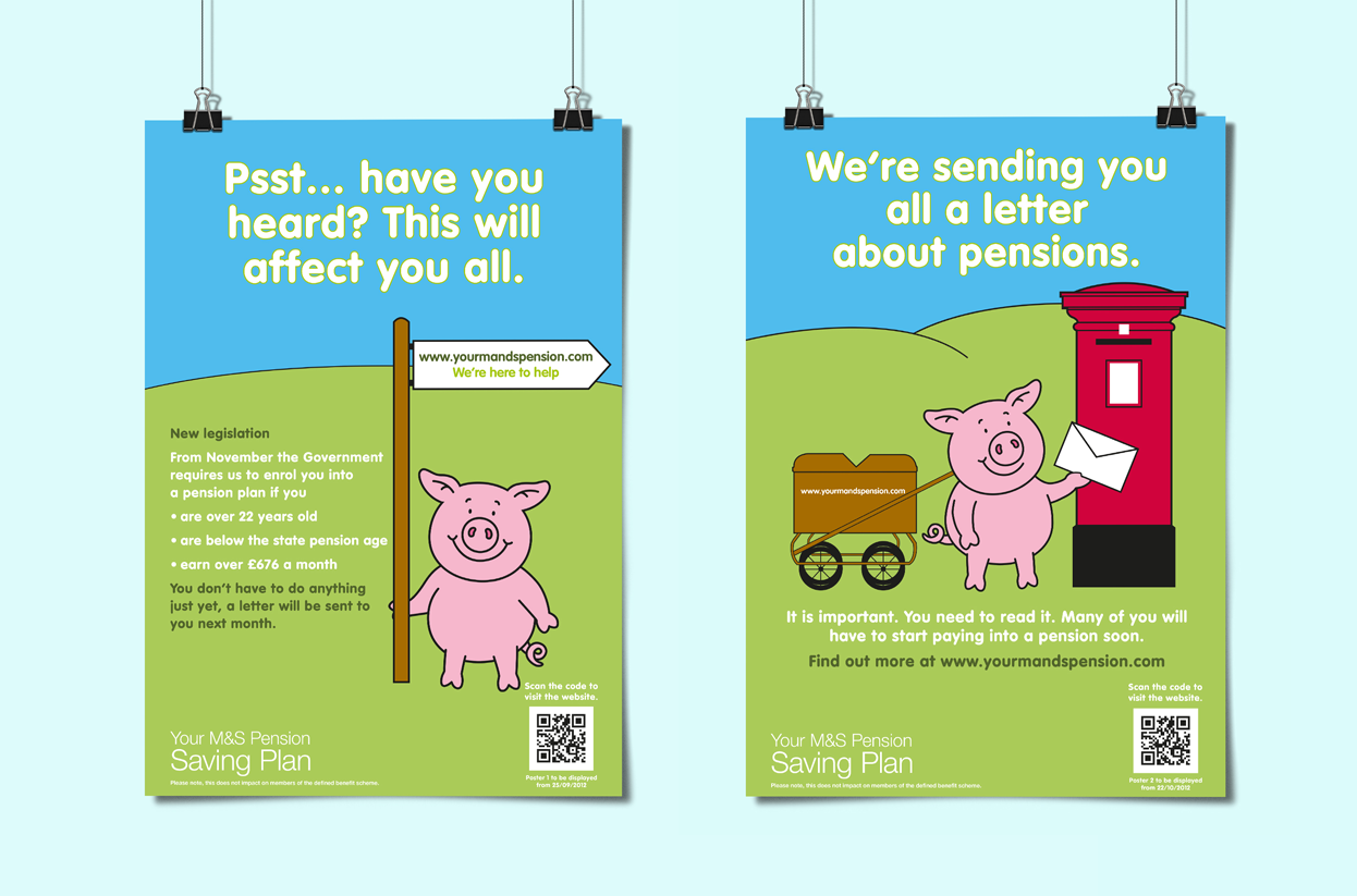 Concept, copy, illustration of internal M&S campaign to promote and explain the introduction of their auto-enrolment pension scheme to their employees.